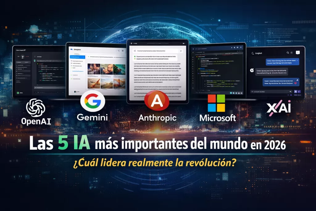 Las 5 IA más importantes del mundo están redefiniendo cómo trabajamos, invertimos, programamos, creamos contenido y tomamos decisiones estratégicas. En esta guía completa analizamos en profundidad cuáles son, qué empresa está detrás de cada una, sus fortalezas, debilidades, estadísticas actuales, casos de uso reales y qué se proyecta para su evolución futura.